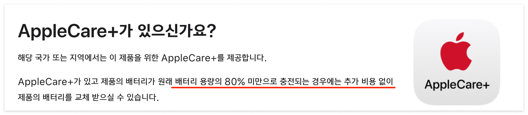 2. 배터리 효율이 80% 미만이 아니라면 애플케어 서비스를 받으실 수 없습니다.