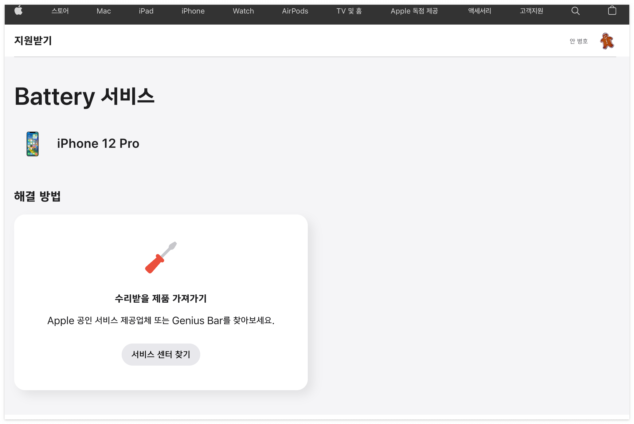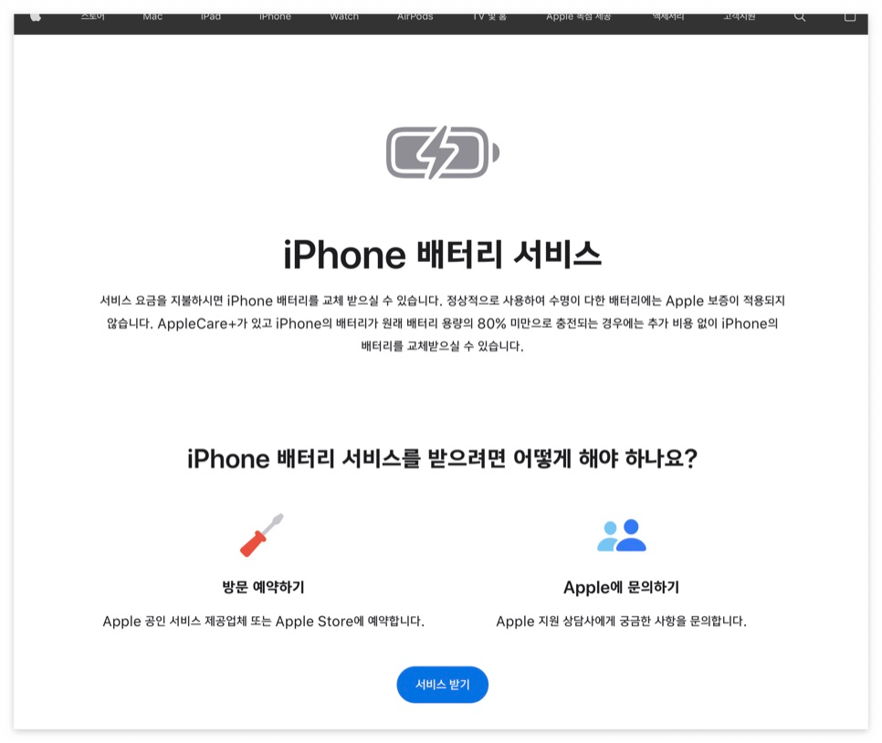우선 애플 공식 홈페이지에서 배터리 교체 예약을 합니다.