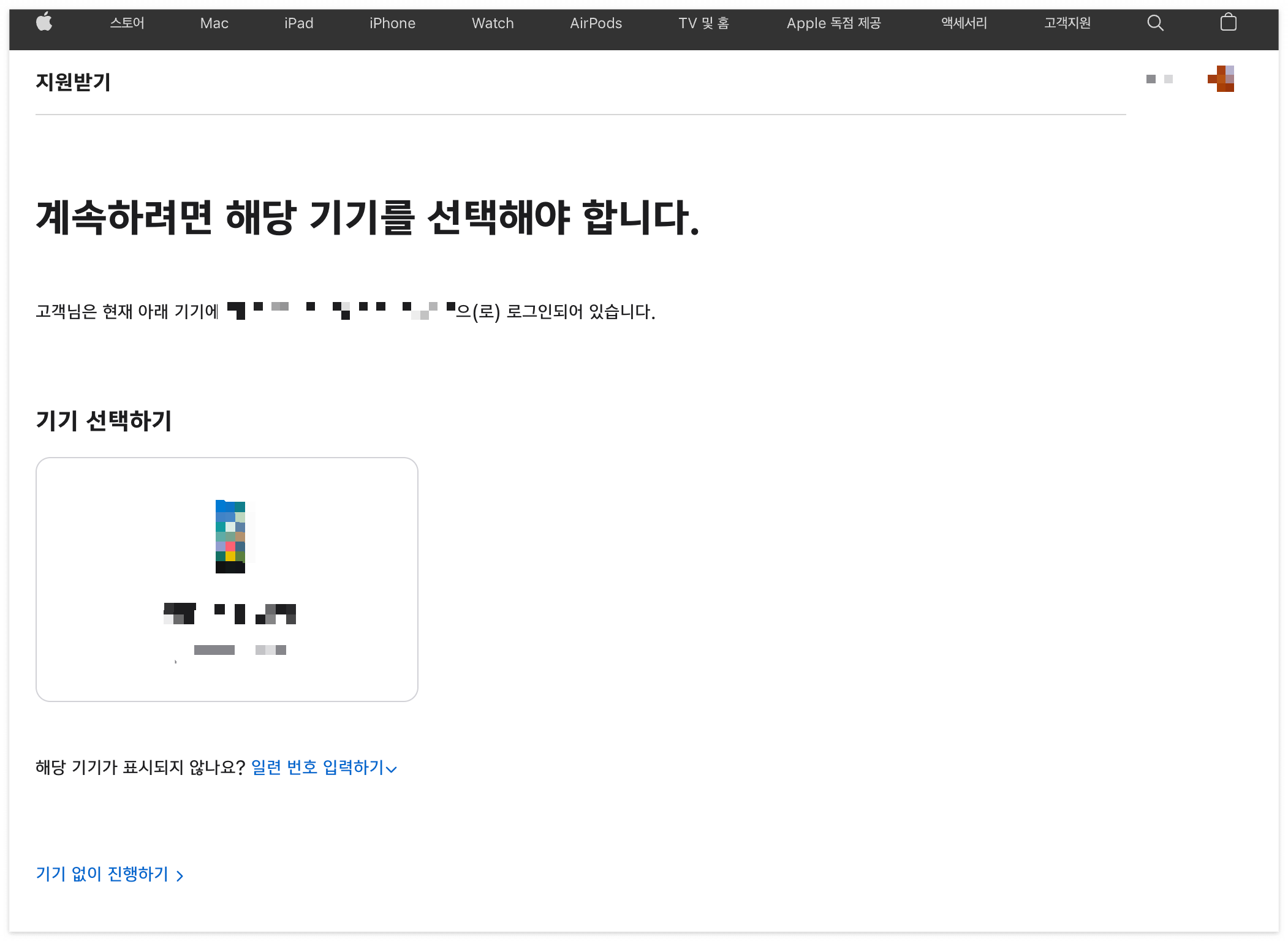 그러면 자신이 애플 서비스를 받을 수 있는 기기가 나옵니다!